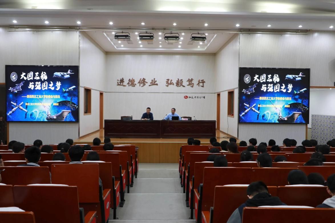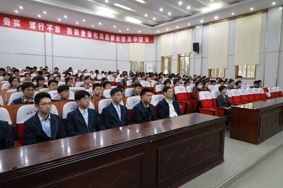 。报告从中国成就的政治根基、国防利器与国家战略实力、西工大精神与“总师育人文化”等三个方面展开。他结合西工大校史中“华航西迁”的壮举,阐释了国家战略需求与高等教育紧密结合的历史逻辑。此外,他以校友张金鹏(中国空空导弹研究院首席专家)等“总师型”人才的成长故事,向师生诠释了我校“隐姓埋名,为国铸剑”的精神传承。报告结束后,学生们踊跃提问,现场气氛活跃。本次报告以西工大“总师育人文化”为纽带,将国家战略、科技前沿与青年使命紧密相连,为淮中学子种下了“科技报国”的种子。