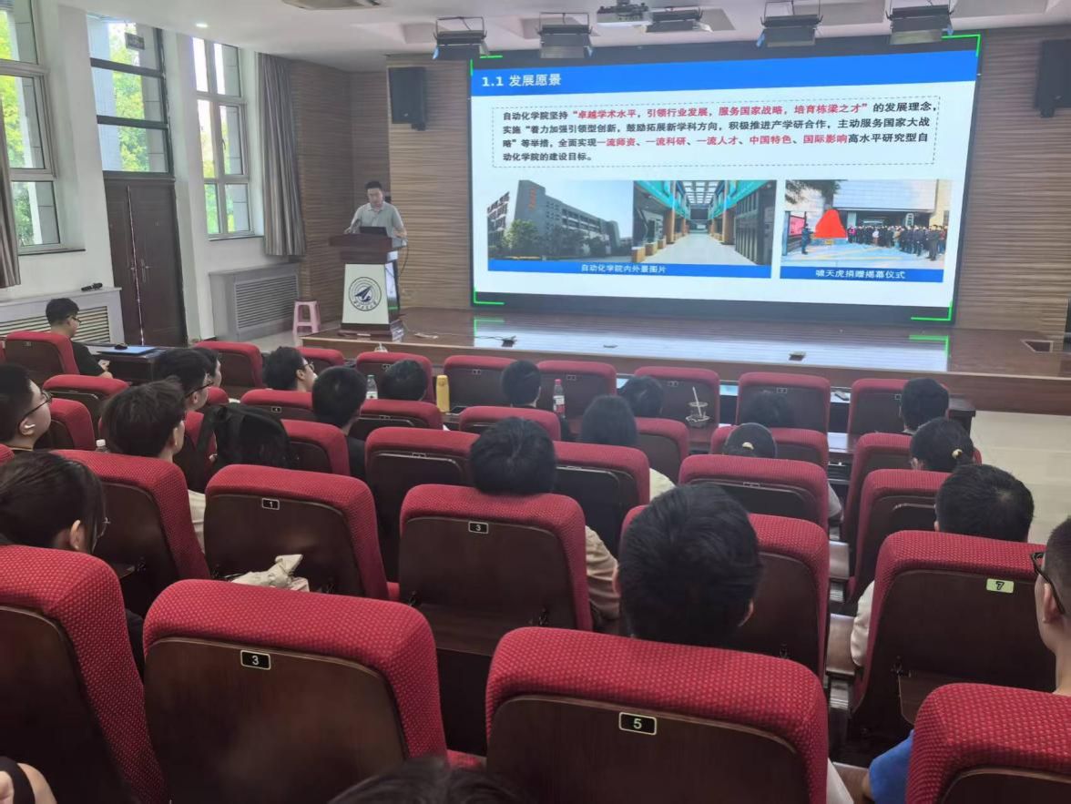 李伟林围绕培养目标、课程体系、专业特色、多元就业方向以及广阔发展前景等多个维度系统介绍了学院自动化、电气工程及其自动化、机器人工程专业建设情况。通过列举历届毕业生的高质量就业案例和考研深造情况,生动直观地呈现了各专业优势与发展潜力。他说,同学们要立足个人兴趣与未来发展,理性自主选择专业,避免盲目跟风。希望通过本次宣讲能够帮助大家充分了解各专业特色,为后续的专业选择提供有价值的参考依据。
