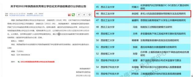 9院优博风采|2022年陕西省优秀博士学位论文获奖者:余自权