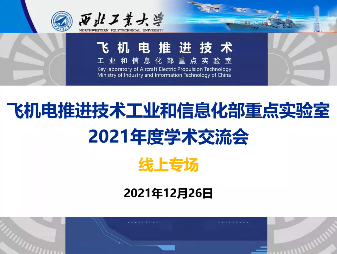 飞机电推进技术工业和信息化部重点实验室成功举办线上2021年度学术交流会。会议邀请到七位西工大青年教师,分别就自己的研究方向和最新科研成果作了分享交流。会议由直播平台