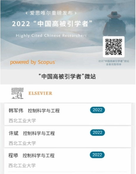 三位教授入选Elsevier2022年中国高被引学者