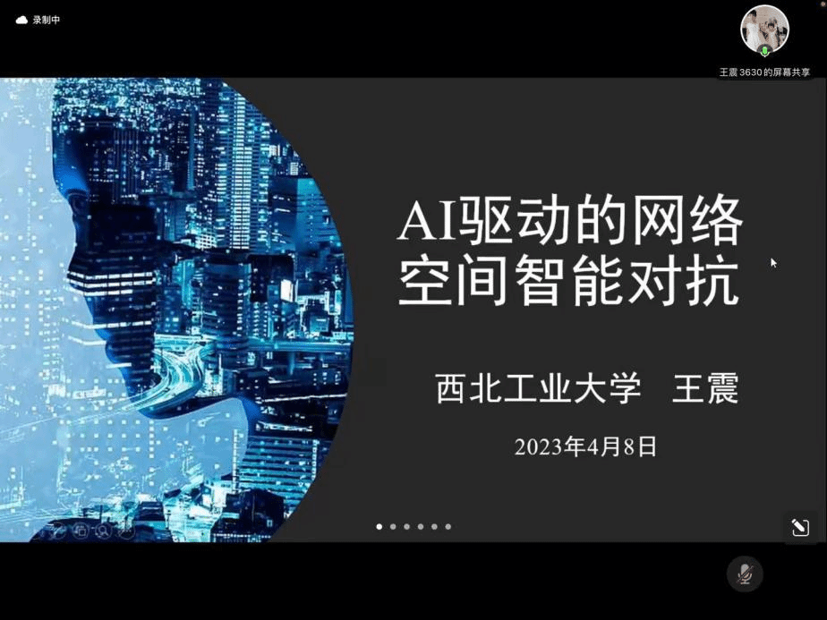 的王震教授做了题为“AI驱动的网络空间智能对抗”的学术报告,直播平台