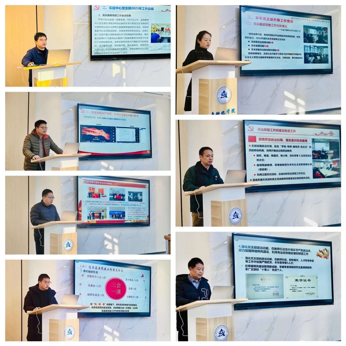 会上,学院教学实验中心党支部书记赵犇、智能科学与技术系党支部书记兰华、电气工程系党支部书记申科、检测技术与自动化系统系党支部书记高兵兵、机关党支部书记魏爱玉、控制理论与控制工程系党支部书记陈小锋、导航制导与控制系党支部委员刘小雄依次开展现场述职,参会人员根据述职情况进行现场打分。