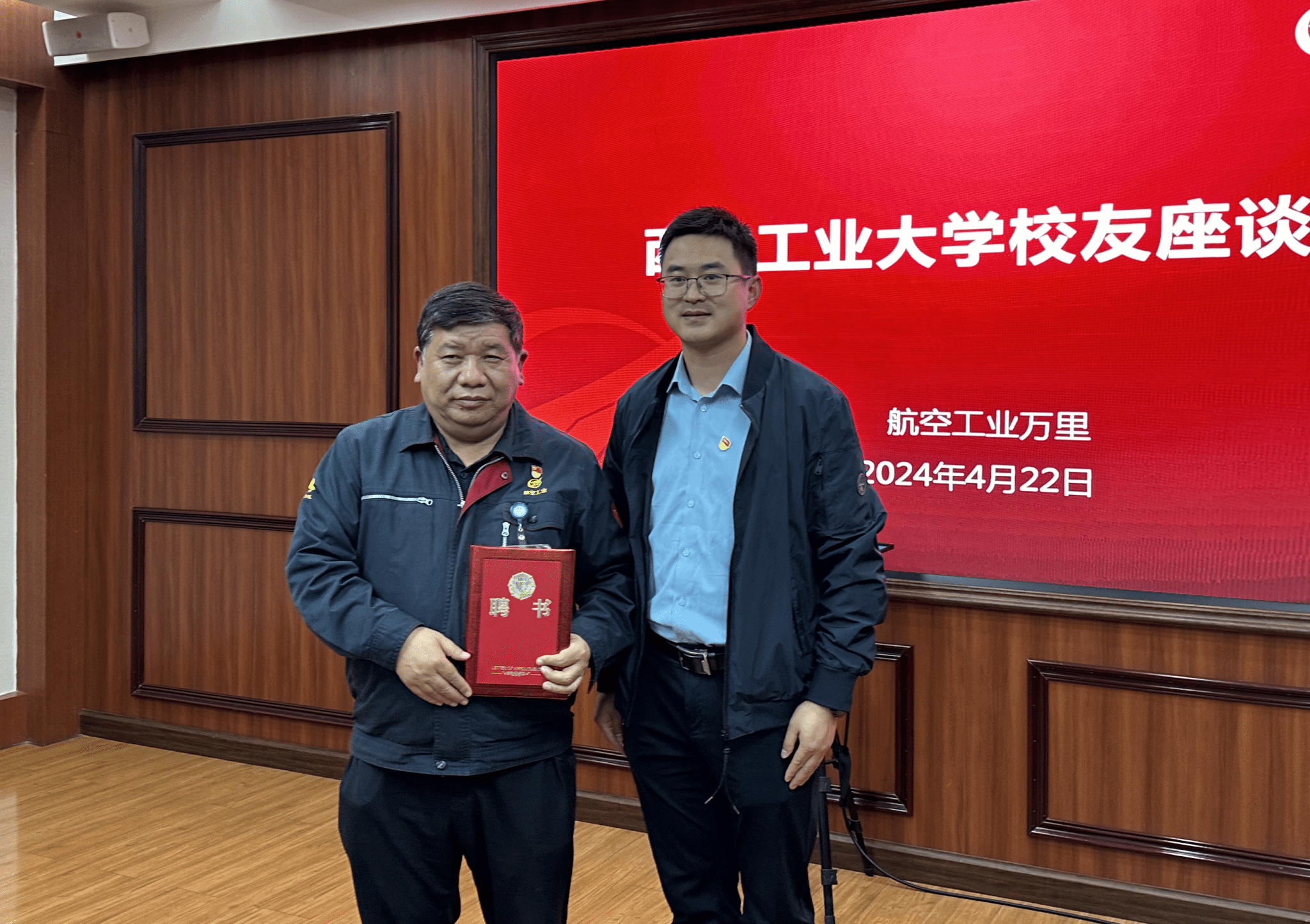交流座谈后,双方领导发表讲话。杨华表示,双方在科研项目合作、人才联合培养等方面合作基础深厚、关系紧密,希望未来双方以结对共建为契机,共同为航空事业发展贡献力量。易正阳表示,兰飞扎根西部、服务国防的精神与学校“总师型”人才特质高度契合,未来将通过组织学生赴兰参观学习、聘请校友思政导师等方式,服务“总师型”人才培养,希望双方在企业招聘、学生就业等方面持续强化合作,共育时代新人、服务行业发展。易正阳代表学院党委聘请优秀校友杨华担任学院“总师面对面”思政教育课外导师。