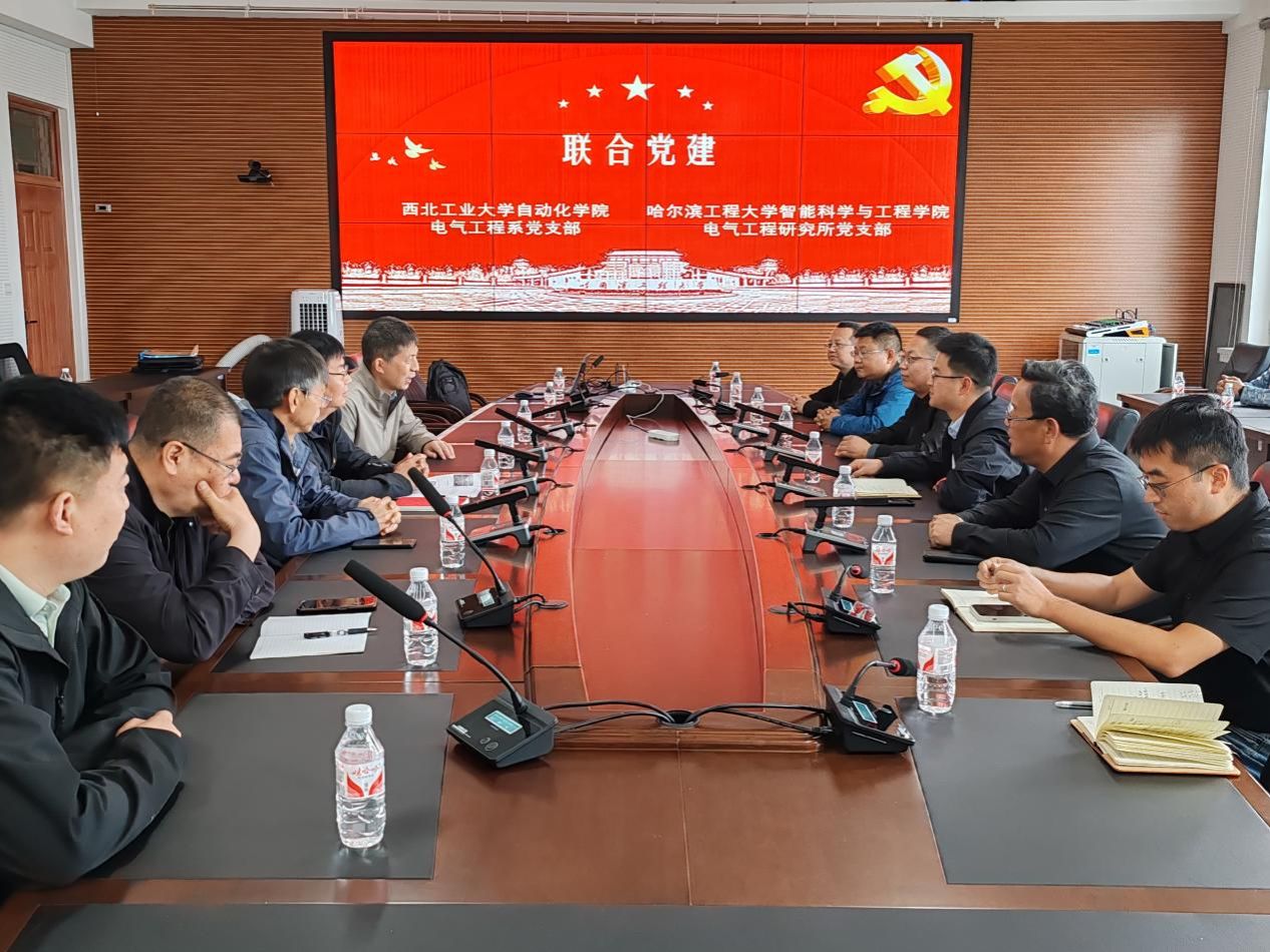 目前发展重点和基本情况,双方党支部书记张拓、申科分别介绍了电气工程研究所党支部和电气工程系党支部的总体建设情况。双方围绕“坚持立德树人根本任务,传承哈军工精神”主题,从人才培养、课程设置、学生就业等方面开展深入交流研讨。会上,双方开展了党纪共学,并分享了推进党纪学习教育的有力举措和党建工作先进经验。