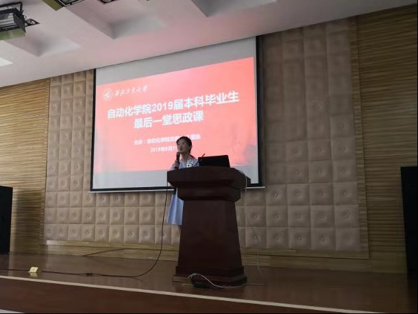 根据党委学生工作部、校团委《关于做好2019届本科生毕业教育工作的通知》要求,牢筑毕业生理想信念与思想根基,教育引导毕业生担当时代责任、勇于砥砺奋斗,611日上午,直播平台 2019届本科毕业生“最后一堂思政课”在直播平台 报告厅开讲。自动化学院党委书记潘泉以“秉承西工大精神,做新时代的奋斗者”为题,为学院全体2019届毕业生进行讲授,思政课由辅导员高莹主持。