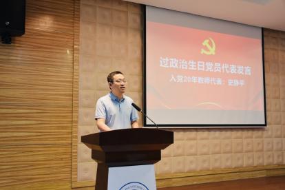 入党40年教师党员,学院原院长、党委书记潘泉教授为大家讲述了个人入党历程,以及入党40年的奋斗感想,并鼓励青年学子和青年教师要着眼当下、奋力拼搏,书写一部无悔于青春、无悔于时代的青春奋斗史。