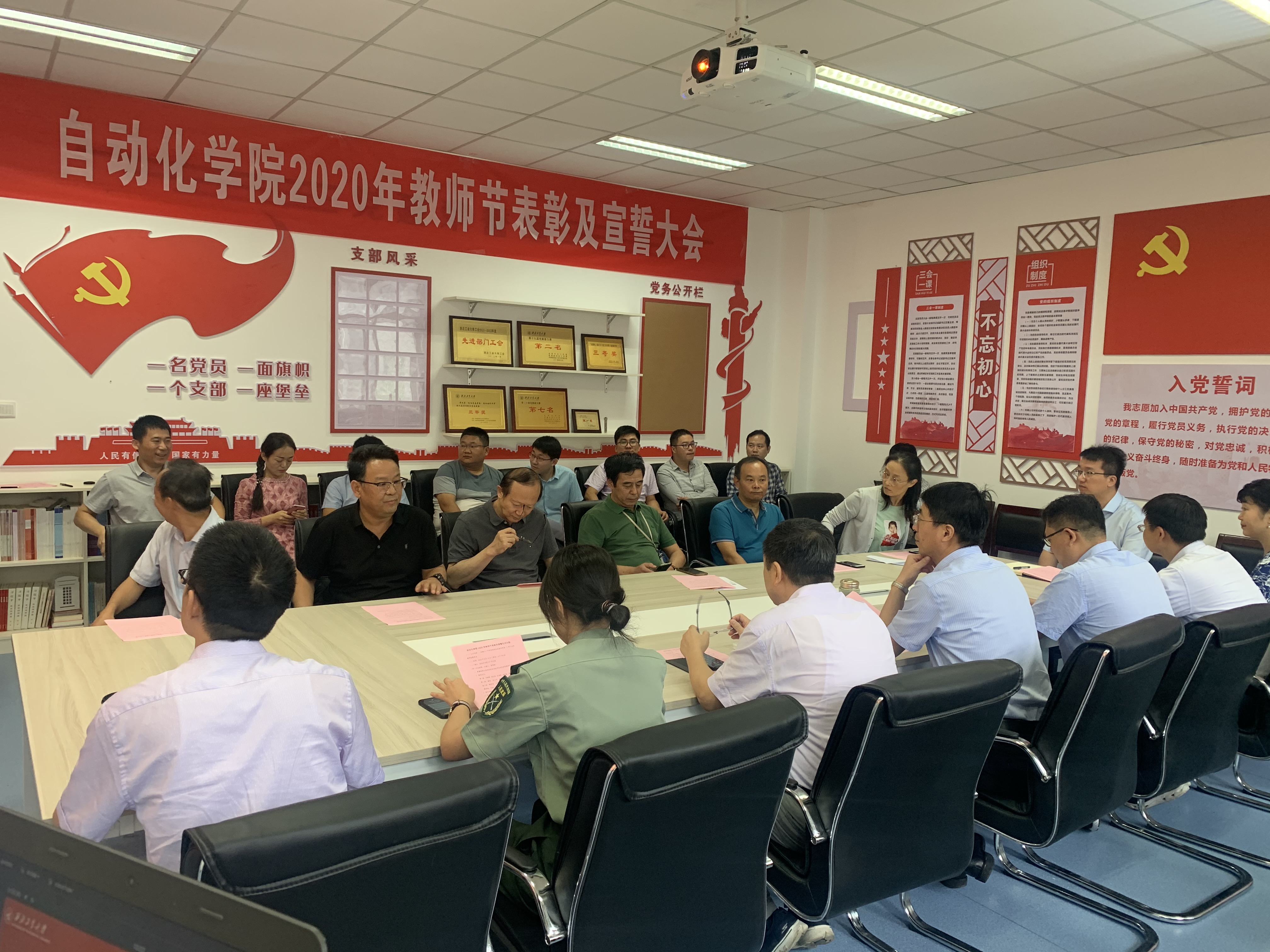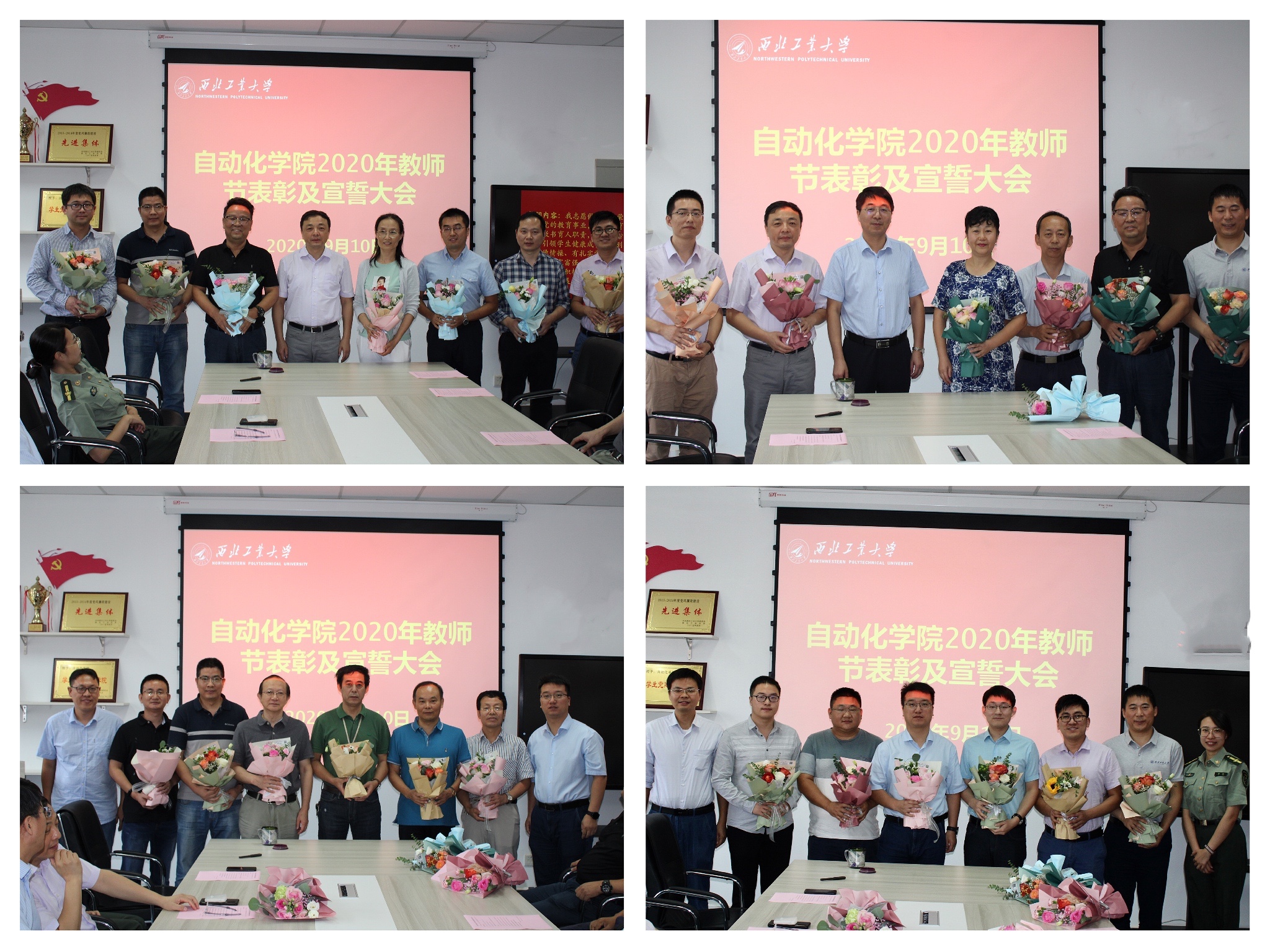 教人为善,师古圣贤。为庆祝第36个教师节,直播平台 于9月10日上午10:00点在学院楼327党员活动室举行了2020年教师节表彰及宣誓大会。学院党委书记潘泉、院长黄攀峰,副书记李伟林、马玥,副院长许斌、刘准钆、王小旭,党委委员王长青,获奖教师及教师代表参加了本次大会。会议由党委副书记李伟林教授主持。