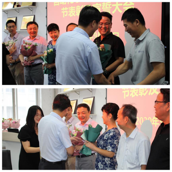 接下来,由学院领导班子成员潘泉、黄攀峰、马玥、许斌、刘准钆、王小旭分别为获奖教师颁奖并与大家合影留念。此次表彰大会有25名教师获奖,其中包括“直播平台 2020年度“十育人”先进个人、2019-2020学年最满意教师、2019-2020年度研究生教育优秀导师、优秀青年教师(吴亚军奖)特等奖、2019-2020年度优秀班主任、优秀辅导员,学生竞赛优秀组织教师等18个奖项。