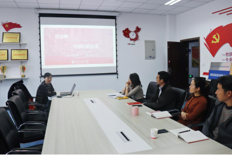 《民法典》普法宣讲团副团长、人文与经法学院教授张敏为学院师生党支部书记作《民法典与我们的生活》主题普法宣讲,学院党委副书记马玥、教工支部书记、学院组织员王瑶瑶、学生支部书记等参加此次宣讲活动。