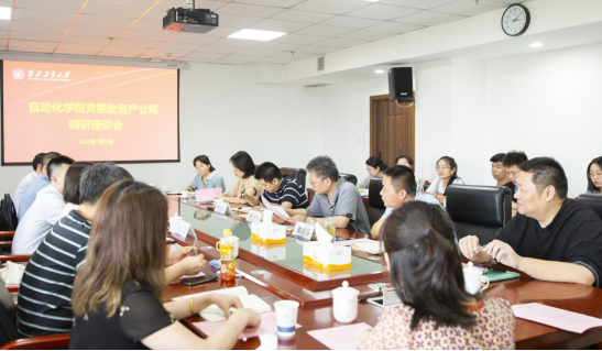 党委副书记管峻、王丽带队优秀师生党员代表赴学校资产公司进行调研。资产公司总经理兼国家大学科技园主任符新伟、副总经理台炳龙、党委副书记田建昌、成果转化部部长徐莹、创业孵化部部长周玲、科研院知识产权办主任顾潮琪等参加座谈交流。座谈会由资产公司党委副书记田建昌主持。
