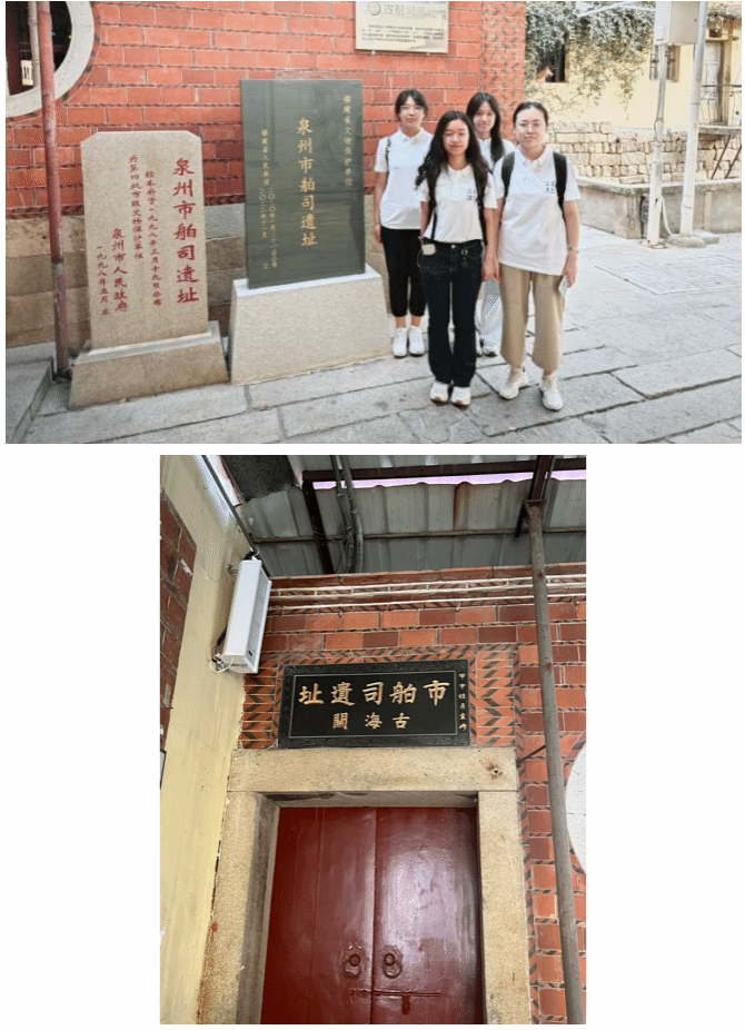 沿着曲折的夹道走到水门巷尽头,即可看到市舶司的古海关市舶司的遗址。千百年前,无数商人、货物经由此地,跨越国界,开启路途漫漫的遥远航行。虽然市舶司原本的格局样貌早已消逝,现有遗址只是一方小天地,却让队员们感受到了浓厚的的历史气息,也更为深刻地感受到了泉州古代商贸管理制度的卓越成就和泉州海洋贸易的繁荣景象。