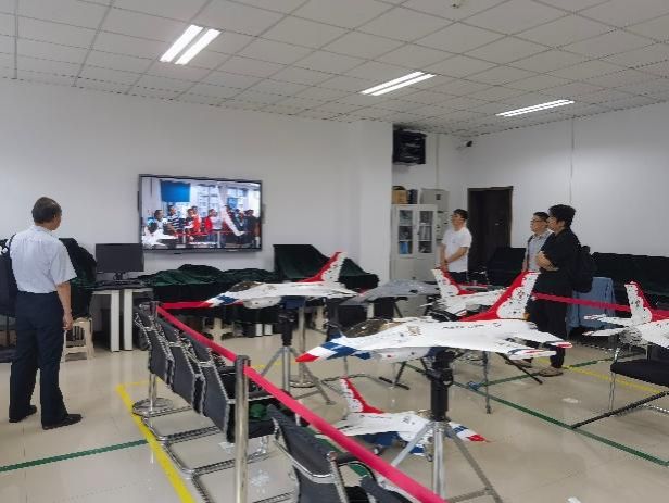 座谈会前,傅钧一行先后参观了学院电机实验室、电推进技术实验室、飞控技术实验室以及机器人实验室。