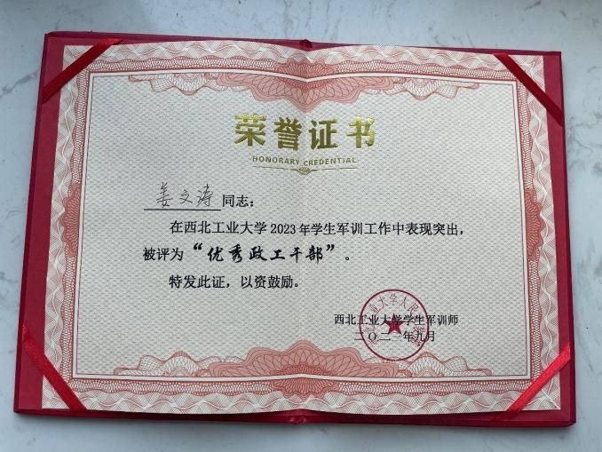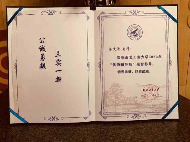 在负责学生工作期间,姜文涛勤耕不辍、精业笃行,已经连续两年在全校辅导员年终考核中排名第一,连续两年获得校级“优秀辅导员”(十佳辅导员)称号,并在军训期间获得“优秀政工干部”称号,所带连队获得“综合优胜连”称号。