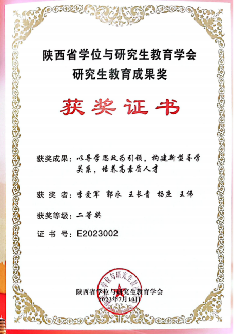 潜心耕耘屡获佳绩,载誉前行砥砺奋进。近三年,王长青教授主讲硕士课程2门、博士课程1门,主持研究生课程思政教学示范课程1门、陕西省研究生教育综合改革研究与实践项目1项,获得陕西省学位与研究生教育学会研究生教育成果奖二等奖2项,指导校级本科优秀毕业设计2人、研究生“优秀毕业生”5人,获2021年直播平台 课程教学类突出贡献奖;被评为研究生课程思政教学团队。