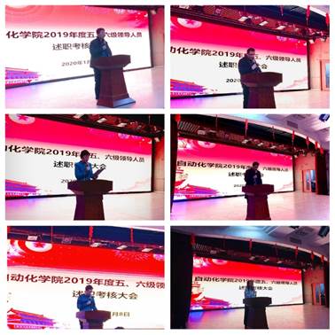 于2020年1月8日在友谊校区健翔楼工会多功能报告厅召开2019年度五、六级领导人员述职测评大会,机关党委杨思敏,院党委书记潘泉,院长黄攀峰,党委副书记李伟林、马玥,学院副院长吴小华、李爱军及全体教职工参加此次大会,会议由潘泉书记主持。