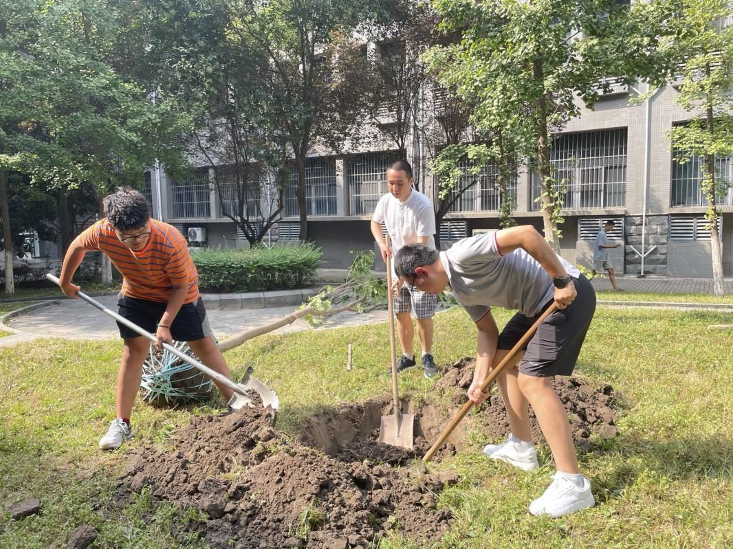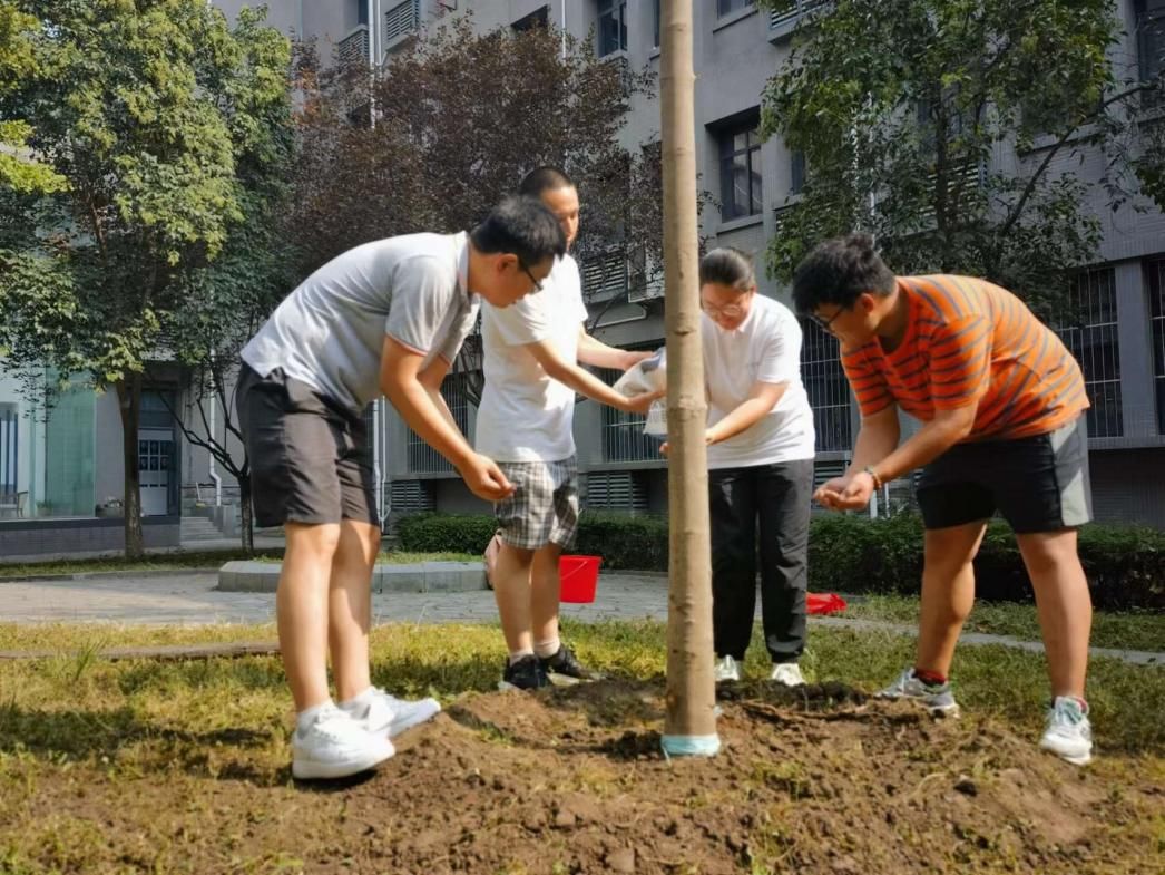 承袭“哈军工”血脉,实践队选取七叶树作为一颗“纪念树”,代表着“国防七子”戮力同心,携手并进,一同为中国国防事业培养人才、贡献力量。实践队师生一起挥动铁锹,挖土筑坑,根入坑、树扶正、重填土,最后细细撒上从南京华航主楼前带回的捧捧红土。红土不语,一如当年跟随华航西迁的老一辈西工大人一样低调谦逊,红心向国。在不久的将来,这棵树会继续蔓延生根,茁壮成长,“西迁精神”和“哈军工”优良传统也将由一代又一代西工大人赓续传递、发扬光大。