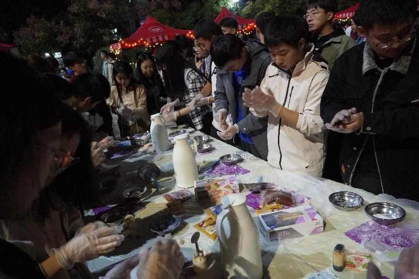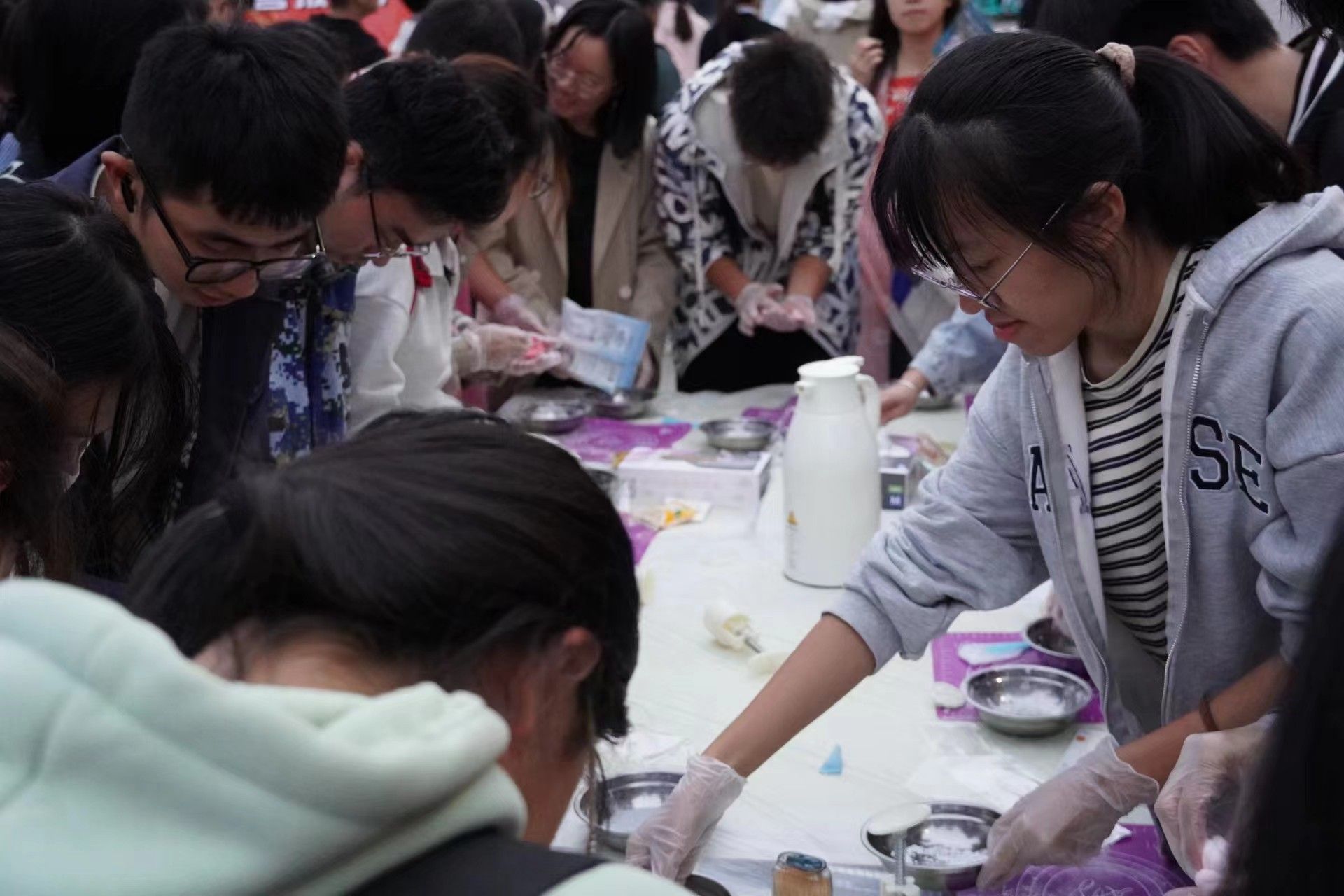 参与者们根据指导,选择不同的馅料,尝试不同的造型和装饰,制作出了心仪的月饼,并在制作过程中交流心得、分享创意。现场氛围热烈,排队等候及围观的同学众多,大家迫切地想参与到活动中来。