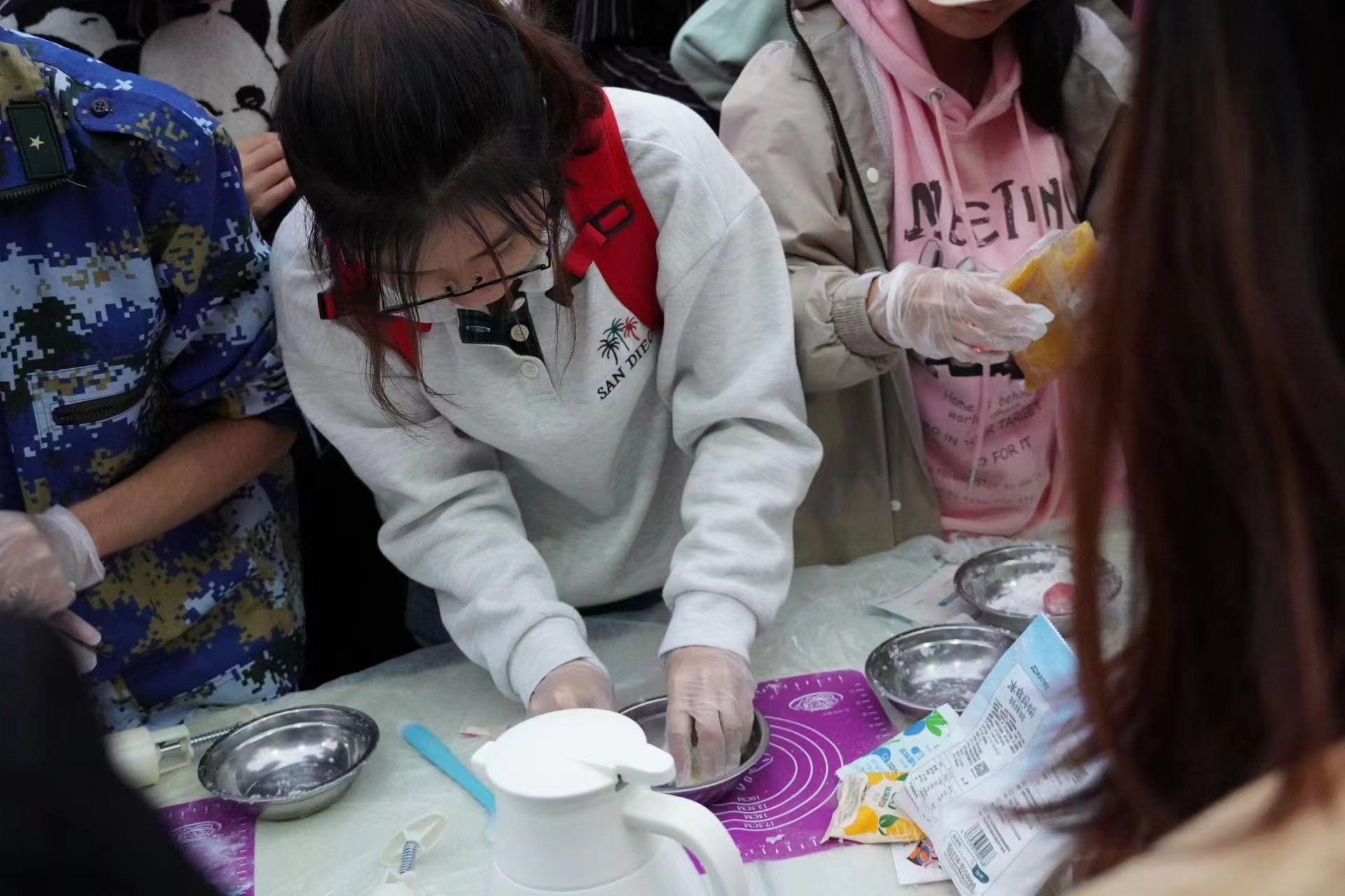 团委学习实践部准备了“巧手做月饼”活动,在游园会现场为同学们提供了一次亲手制作月饼的机会,与同学们共迎中秋。