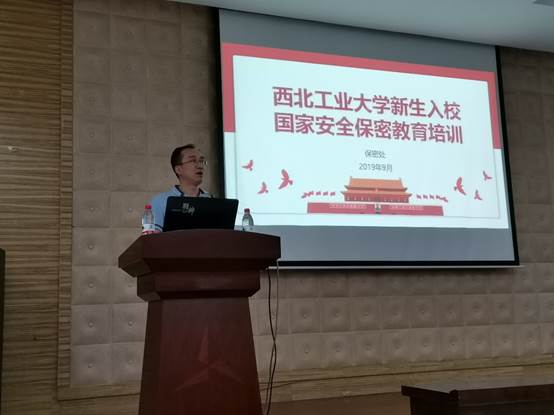 保密处副处长王革明老师主讲。2019级全体研究生新生参加了此次会议。