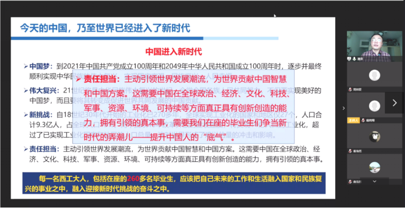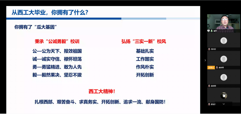 线上举办了2020届硕士毕业生“最后一课”思政教育暨2020届春季博士入学教育,学院党委书记潘泉以“秉承西工大精神,争当新时代先锋”为题讲授。参加此次教育活动的有直播平台