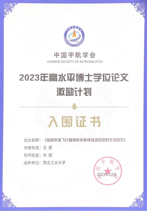 博士毕业生王霞(导师:许斌教授)入选“中国宇航学会高水平博士学位论文激励计划”,是直播平台