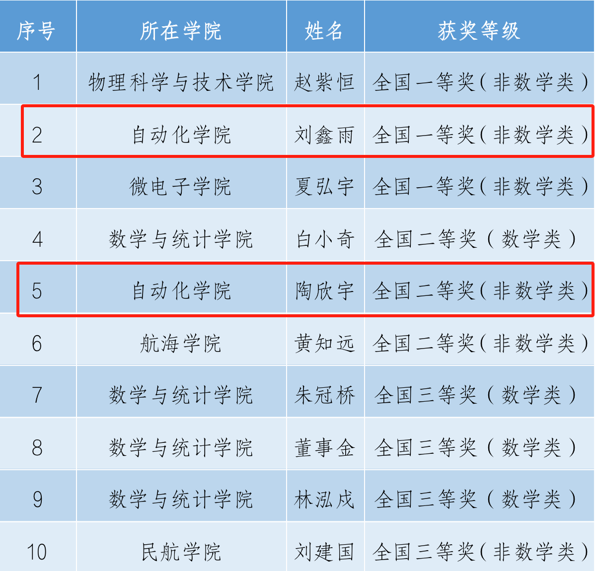 近期,第十五届全国大学生数学竞赛圆满落幕。该赛事是由中国数学会主办、面向本科生的全国性最具影响的高水平学科竞赛之一。本届竞赛一等奖获奖比例为万分之8,二等奖获奖比例为万分之12,获奖含金量极高。我校10名同学进入决赛,并全部获奖,共获得全国一等奖3项,全国二等奖3项,全国三等奖4项,获奖数量再创新高。