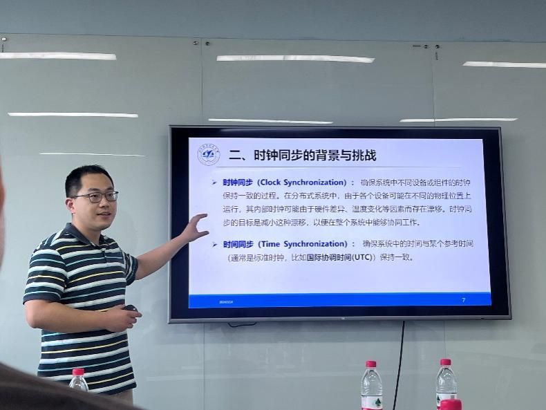 报告中,王振乾首先介绍了时钟同步技术的背景与挑战,以及在航空航天、网络通讯和工业控制等多个领域的重要作用。他强调了高精度时钟同步对于确保系统协同工作的重要性。随后,王振乾详细阐述了当前仿生时钟同步的模型,重点介绍了针对网络攻击的弹性时钟同步算法,并对研究前景进行了展望。在互动环节,王振乾耐心回答了现场师生的提问,针对时钟同步的算法及实际应用问题提供了专业见解。他的报告不仅让参会师生对时钟同步技术有了更加深刻的理解,也激发了学生们对相关科学领域研究的兴趣。