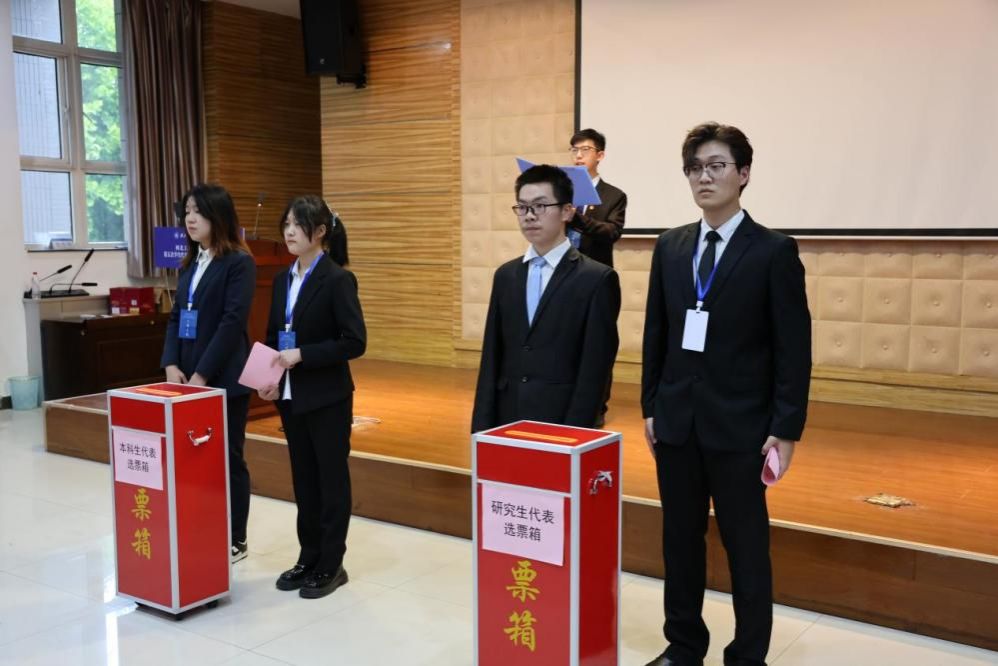 会议进行了公平、公正、公开的无记名投票选举,最终选举出由王赛博、师哲浩、何炯寮组成的新一届学生会主席团及由崔文瑞、张璇、张铭元组成的新一届研究生会主席团成员。选举结果由大会筹备委员会委员梅彩辉在会上宣布。