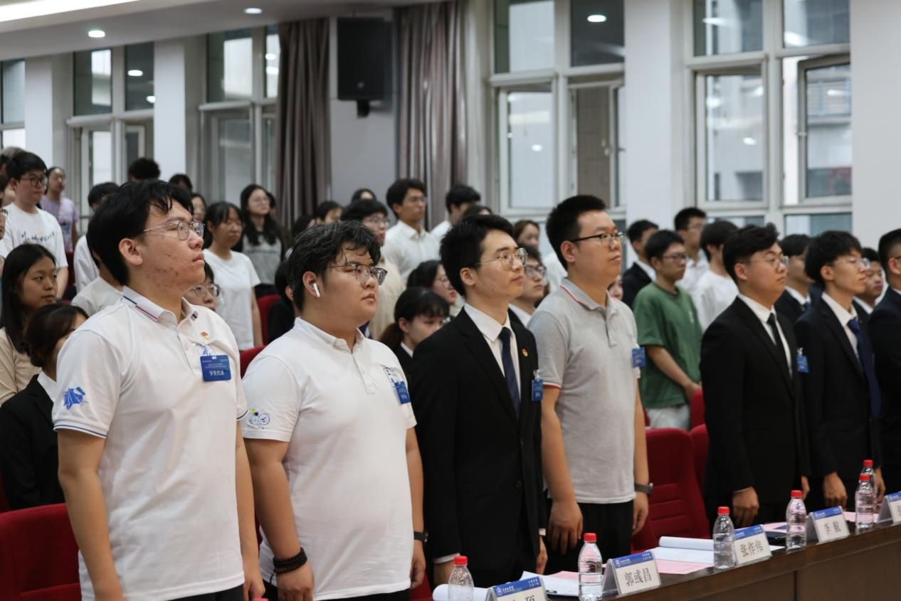 大会在庄严的国歌声中开幕。全体参会人员起立、共唱国歌。