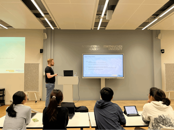 项目成员在亚琛工业大学进行了为期一周的课程学习和学术交流,课程涵盖人工智能与自动化应用、网络互联网中的人机交互、工业与协作机器人与电子自动化与工业应用等内容,来自亚琛工业大学的Marco Becker、Tobias Kaufmann等5位教授、讲师用生动的语言和扎实的理论为同学们带来了一场精彩纷呈的学术盛宴。