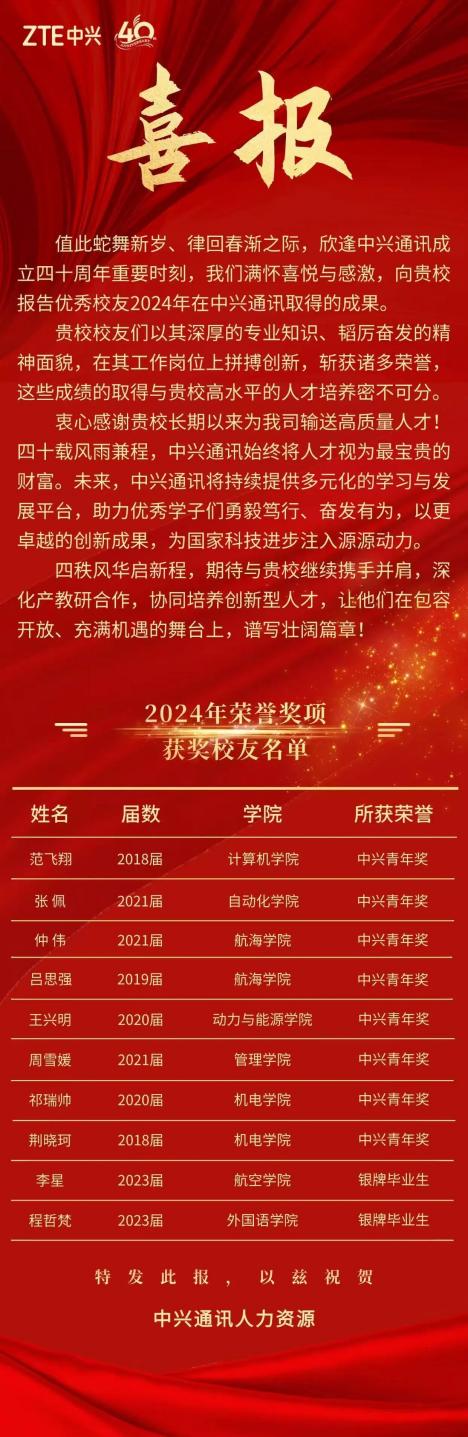 2021届硕士毕业生张佩荣获“中兴青年奖”。