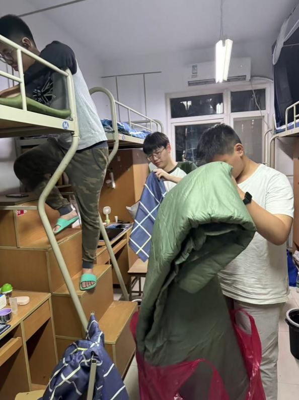 8月23日晚,为切实掌握2025级新生入校后的适应情况,精准助力新生尽快融入大学环境、开启校园新生活,李奥、王尧与姚悦琛走访新生宿舍,开展暖心走访工作。
