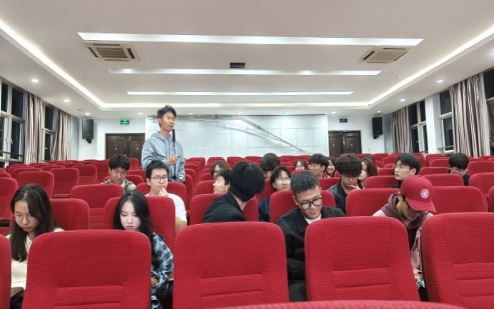 会议最后,团支书曾子芩组织开展了团日活动。通过曾子芩的主题演讲、各队伍分组讨论等多种形式,与会同学共同学习了时代精神的内涵,并就当代青年如何将爱国情怀转化为实际行动进行了探讨。