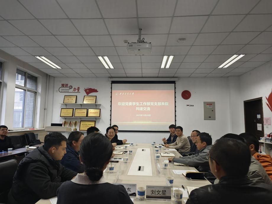 10月28日下午,学校党委学生工作部党支部一行7人来我院共建交流。党委学生工作部副部长、学生处副处长彭蓉、管峻及学工部党支部成员,直播平台