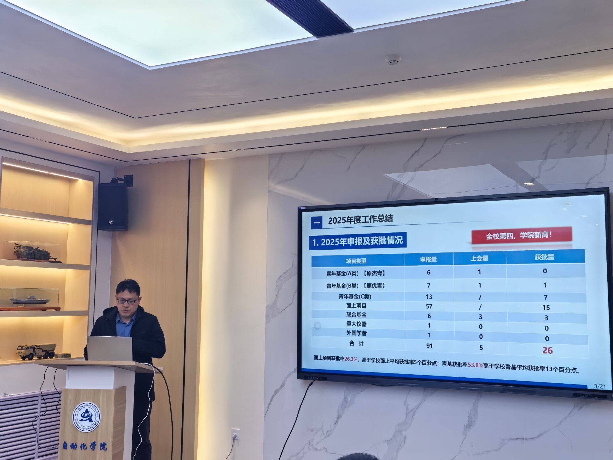 国家自然基金优秀案例库》,要求深入研究撰写思路与逻辑框架。二是严格把控节奏,科研办公室将统筹多轮专家辅导会,组织申报教师按节点完成材料并参与打磨,确保申报进度与质量。三是优化选题策略,建议教师避免研究方向过度集中,注重关键词筛选,同时加强高水平交流,扩大学术朋友圈。四是聚焦基础研究,发挥高校优势,统筹个人学术规划,力争在2026年度申报中再创佳绩。