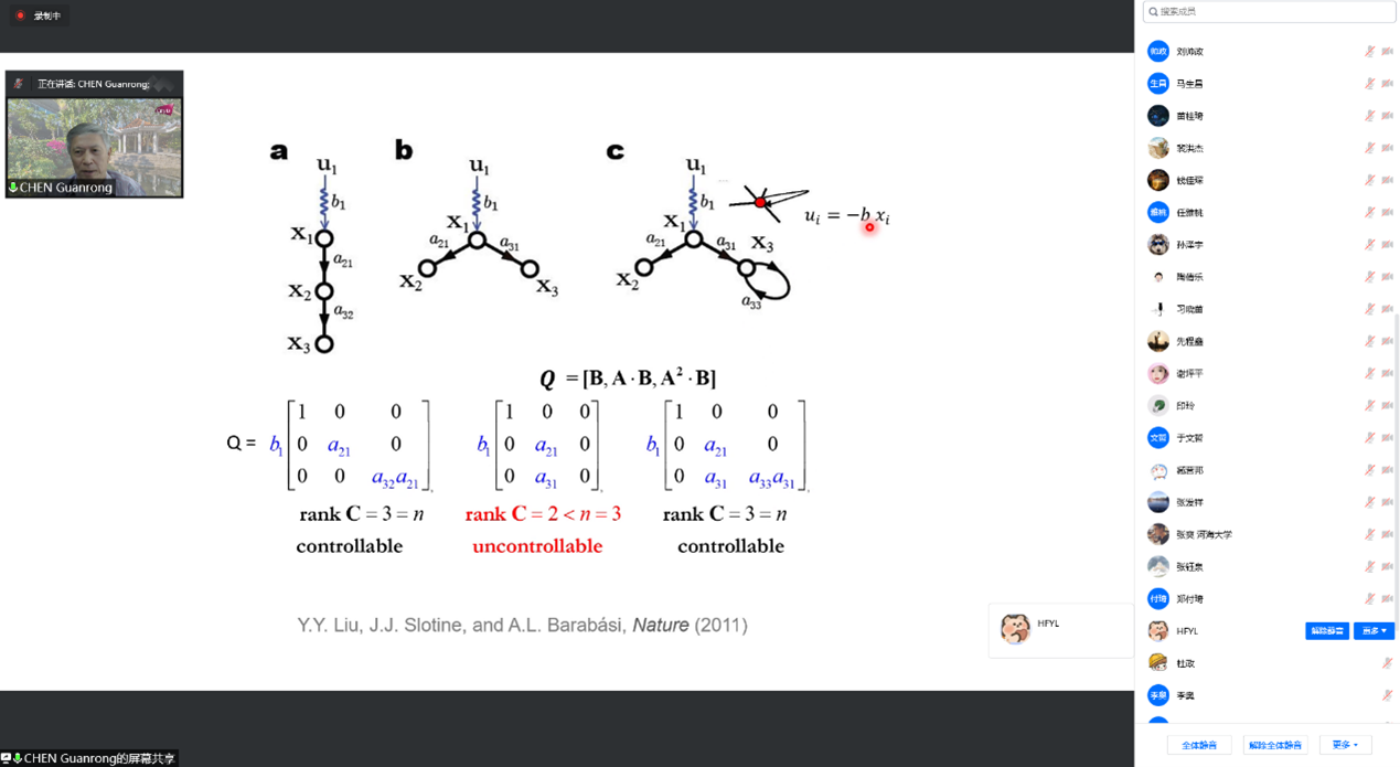 赵宇副教授、东南大学温广辉教授、美国加州大学河滨分校任伟教授、北京大学李忠奎教授共同担任主席,中国电力科学研究院徐式蕴教授、芬兰TC5.4成员Hans AALTO担任副主席。会议特邀香港城市大学陈关荣教授、荷兰格罗宁根大学曹明教授就当前复杂系统控制领域相关问题进行了精彩报告。来自国内外相关领域的专家学者们就各自的研究工作,以线上会议或线上海报张贴的方式进行了广泛而深入的讨论,会场气氛活跃而热烈。