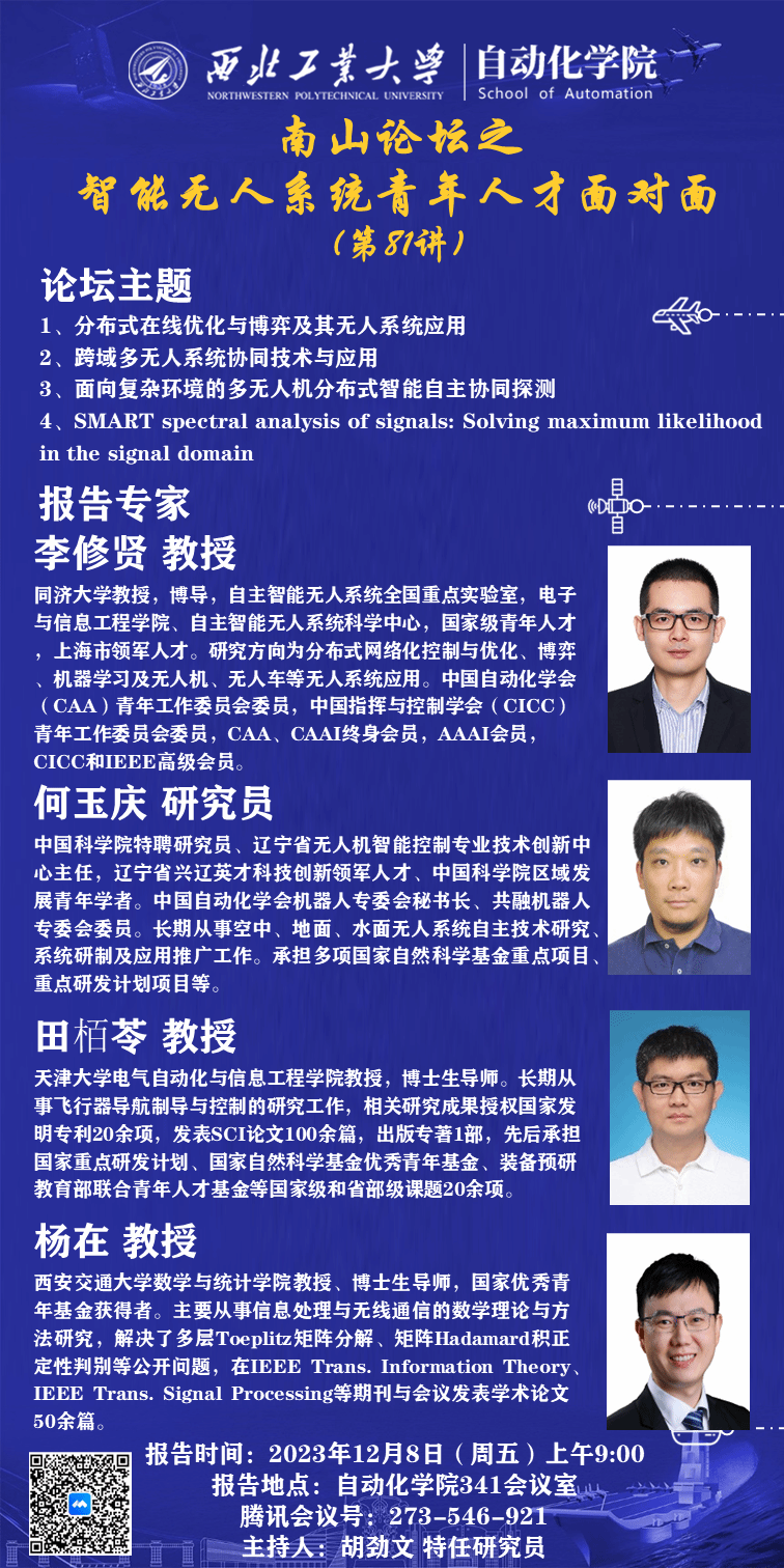 【论坛通知】直播平台 南山论坛之智能无人系统青年人才面对面(第81讲)