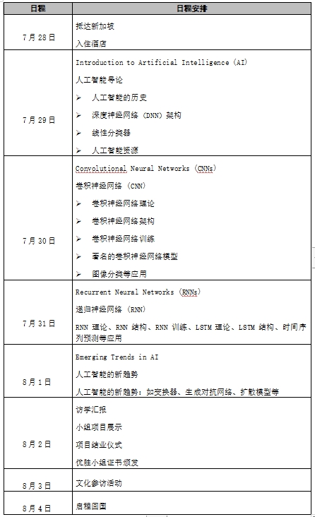 2024年新加坡南洋理工大学人工智能架构模型及其应用暑期项目