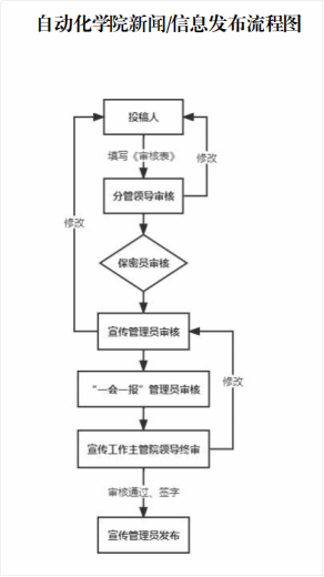 新闻撰稿人若须在学院网站、公众号“小9窝”及其他媒体发布新闻/信息稿件,请撰稿人填写《直播平台 新闻/信息发布审核表》(见附件)并附新闻稿件纸质版,经分管院领导、保密员、宣传管理员、“一会一报”管理员、宣传工作分管院领导逐一审核签字,并加盖学院党委印章后方可发布。