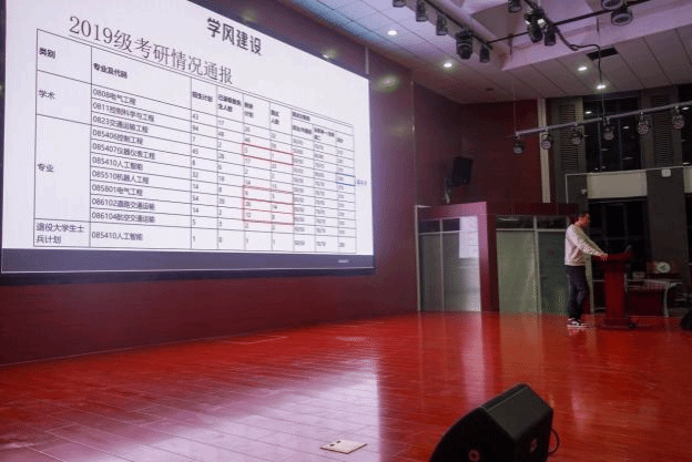 大会上,管峻就2019级学生的保研情况为大家讲解学院的保研政策,在对保研同学表达祝贺的同时,也为准备考研的同学们加油打气,希望同学们艰苦奋斗、充满自信地迎接即将到来的挑战。随后,周杨为同学们分析了19级同学的考研情况,并帮助他们答疑解惑,减轻压力。余孝军为同学们提出了很多关于考研的个人建议,包括心态、学习、考前准备、沟通交流、毕业设计等多个方面的内容,帮助同学们扫除前进路上的绊脚石。
