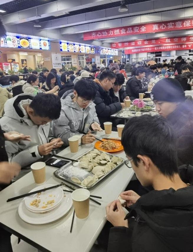 于元旦当天在云天苑餐厅成功举行师生包饺子活动,学院党委副书记(主持工作)李伟林,党委副书记管峻、团委书记张作伟和学院各年级60余名同学参与了此次活动。大家抻面皮,取饺子馅儿,一握一捏。不一会儿,一个个各具特色的饺子就摆满了托盘。当一盘盘饱含着大家劳动成果的饺子热气腾腾地端上桌,那浓浓的饺子香气使同学们忘却了冬日的寒冷,食堂中到处是欢声笑语。