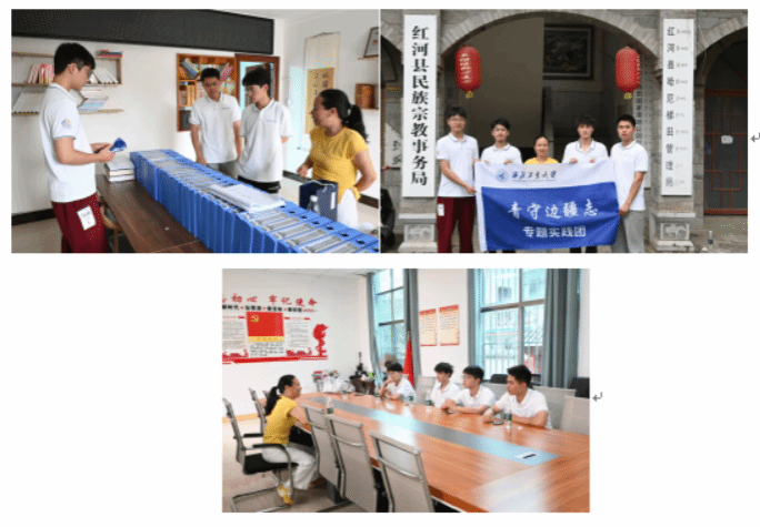 实践队还来到了红河县民族宗教事务局。在交流座谈会上,队员们认真聆听工作人员讲解,并就多民族聚居区的和谐发展与有效治理深入交流。通过座谈,队员们对边疆民族地区的稳定之基有了更深层的理解,民族团结才是发展的基石。虽然不同民族有着各自的文化背景、思想观念和宗教信仰,但所有个体和组织都必须遵守法律法规。“爱国爱党是排在第一位的。”工作人员强调。