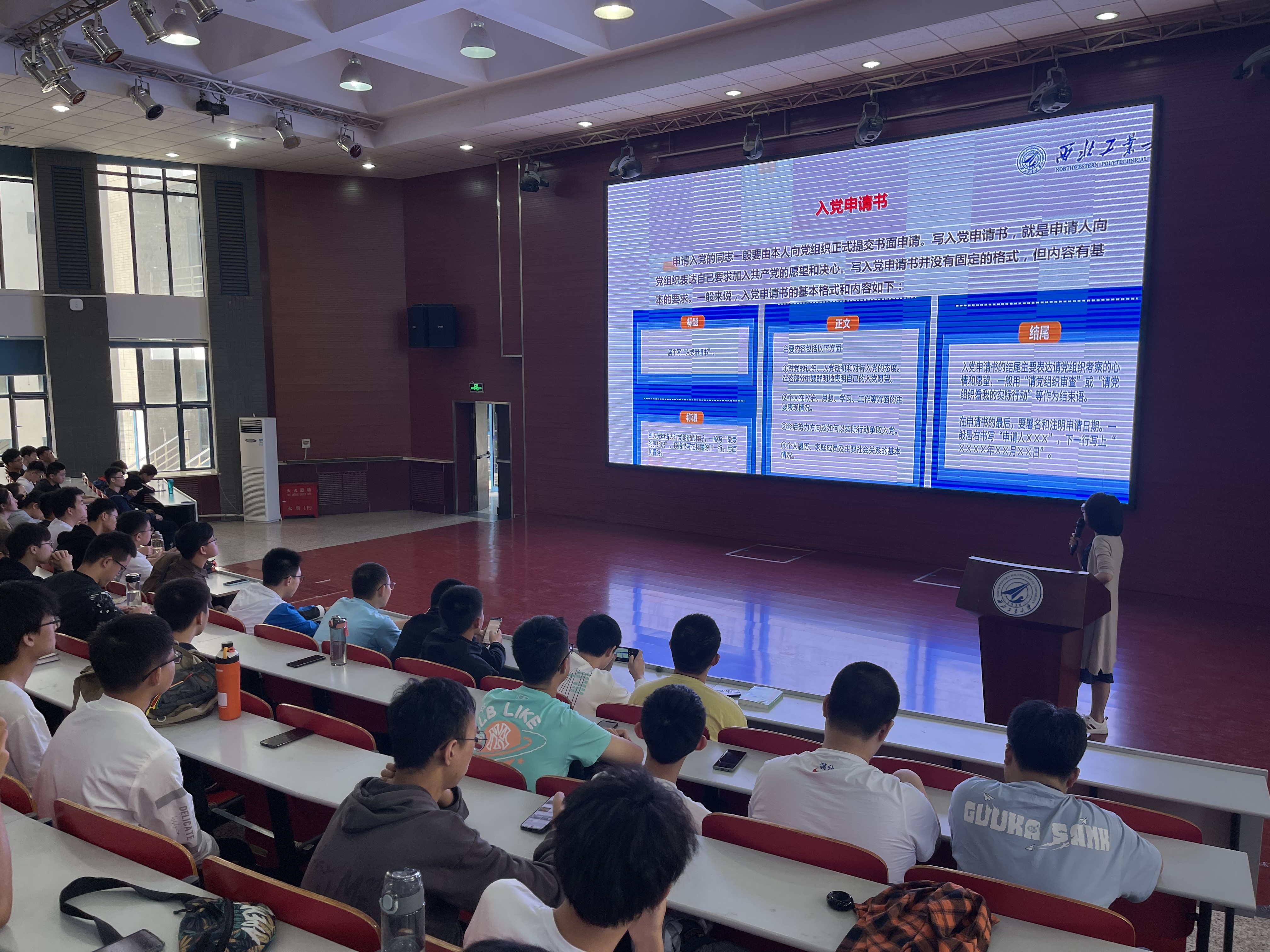 9月7日上午,直播平台 党委副书记马玥在教西D100教室为2021级自动化类新生开展入党启蒙教育。