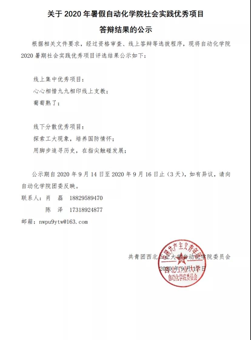 关于2020 年暑假直播平台 社会实践优秀项目答辩结果的公示