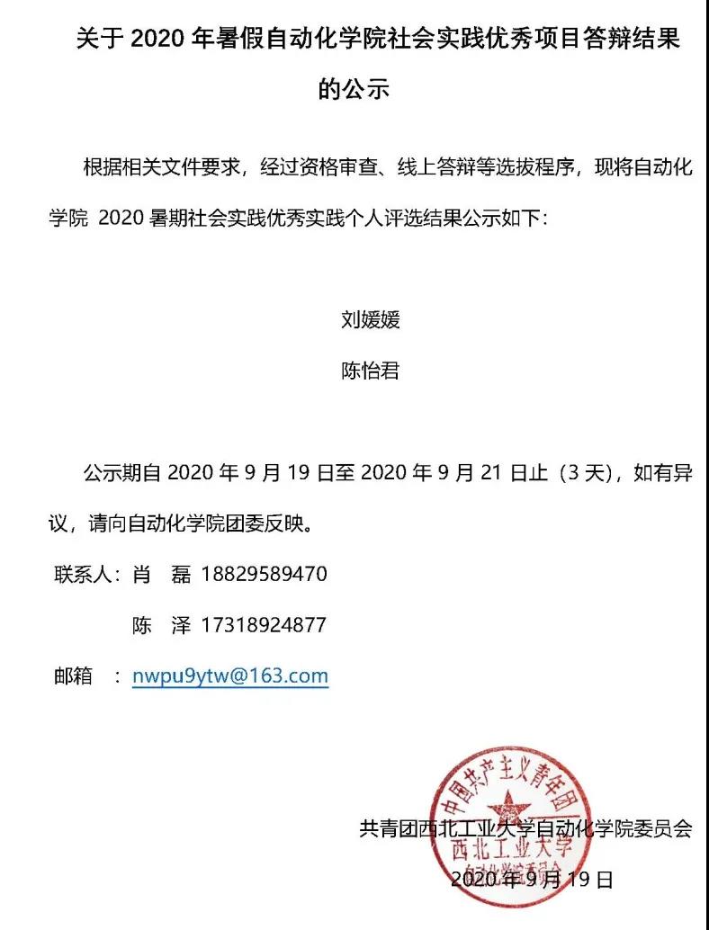 关于2020年暑假直播平台 社会实践优秀项目答辩结果的公示