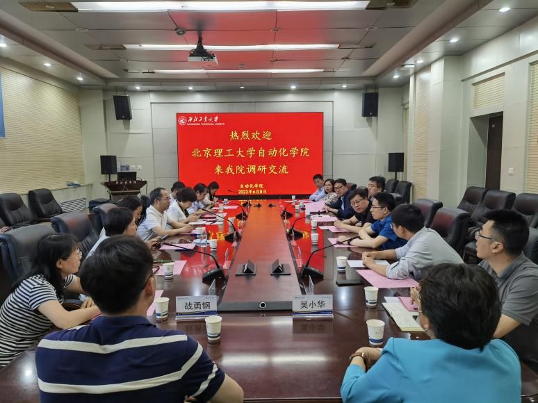 一行的来访表示热烈欢迎。夏元清对学院的热情接待表示了感谢,系统介绍了此次调研的内容和目的。双方围绕自动化前沿领域人才培养、科学研究、学科发展、师资队伍建设、课程建设、实验教学中心及公共平台建设、学工队伍建设与双创项目培育、科研成果转化及党建工作等方面的内容进行了深入探讨与交流,并就后续进一步加强两院间的沟通了解,持续开展多领域、多方面、多形式的合作交流达成共识,通过双方互学互鉴,奋力开创互利共赢的高校共建新局面,共同推进自动化学科的长足发展。